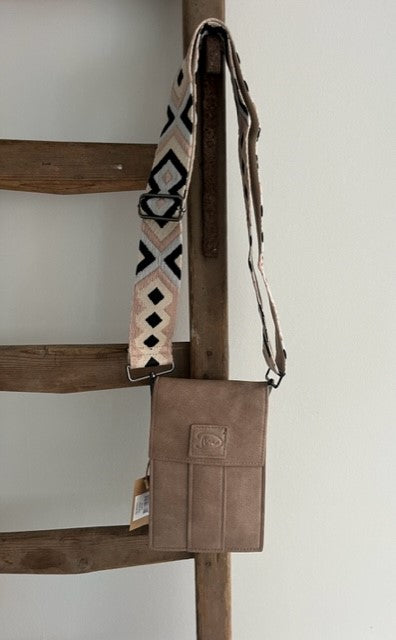 Leuke camelkleurige telefoon/schoudertas - Houston.