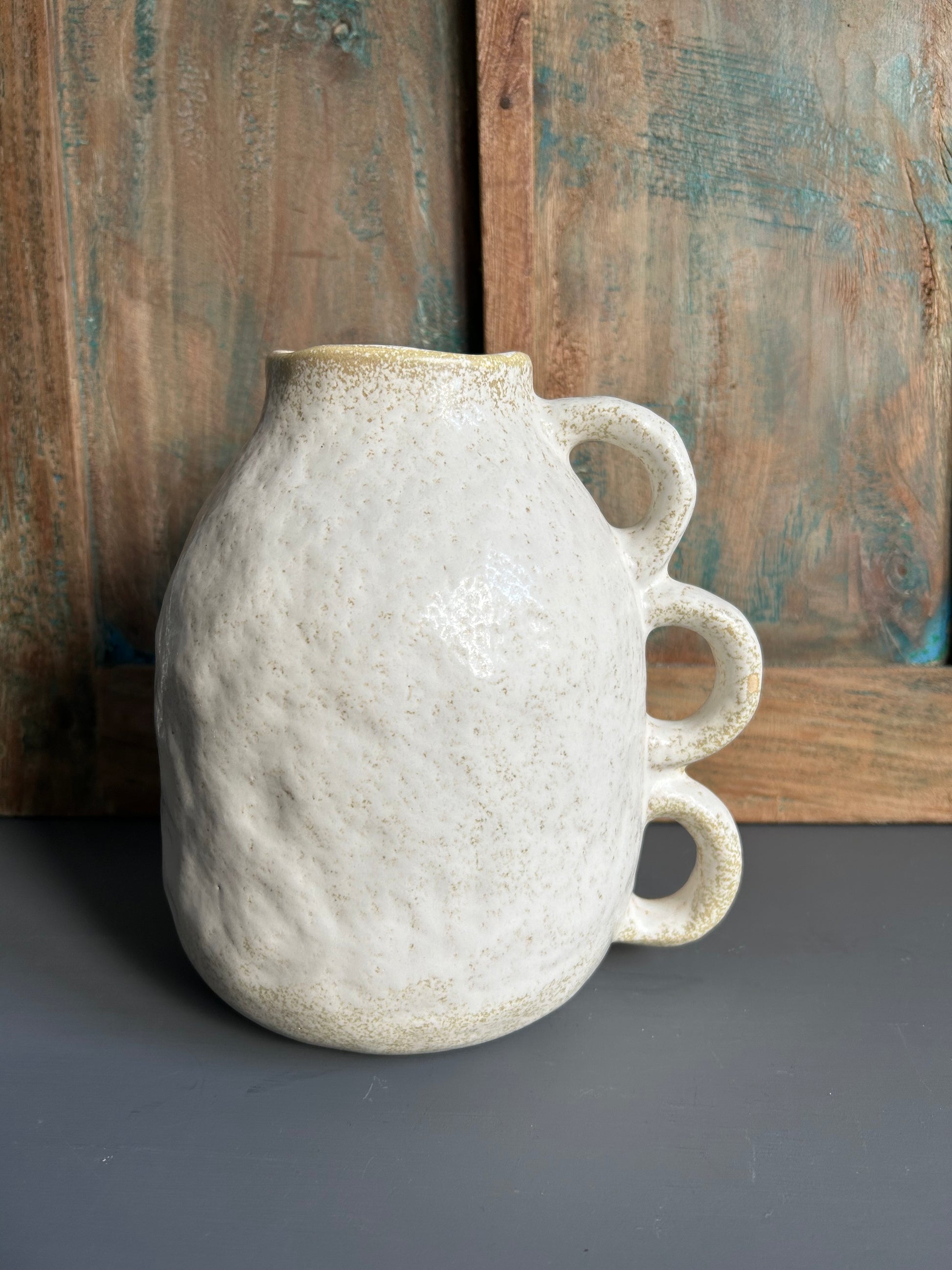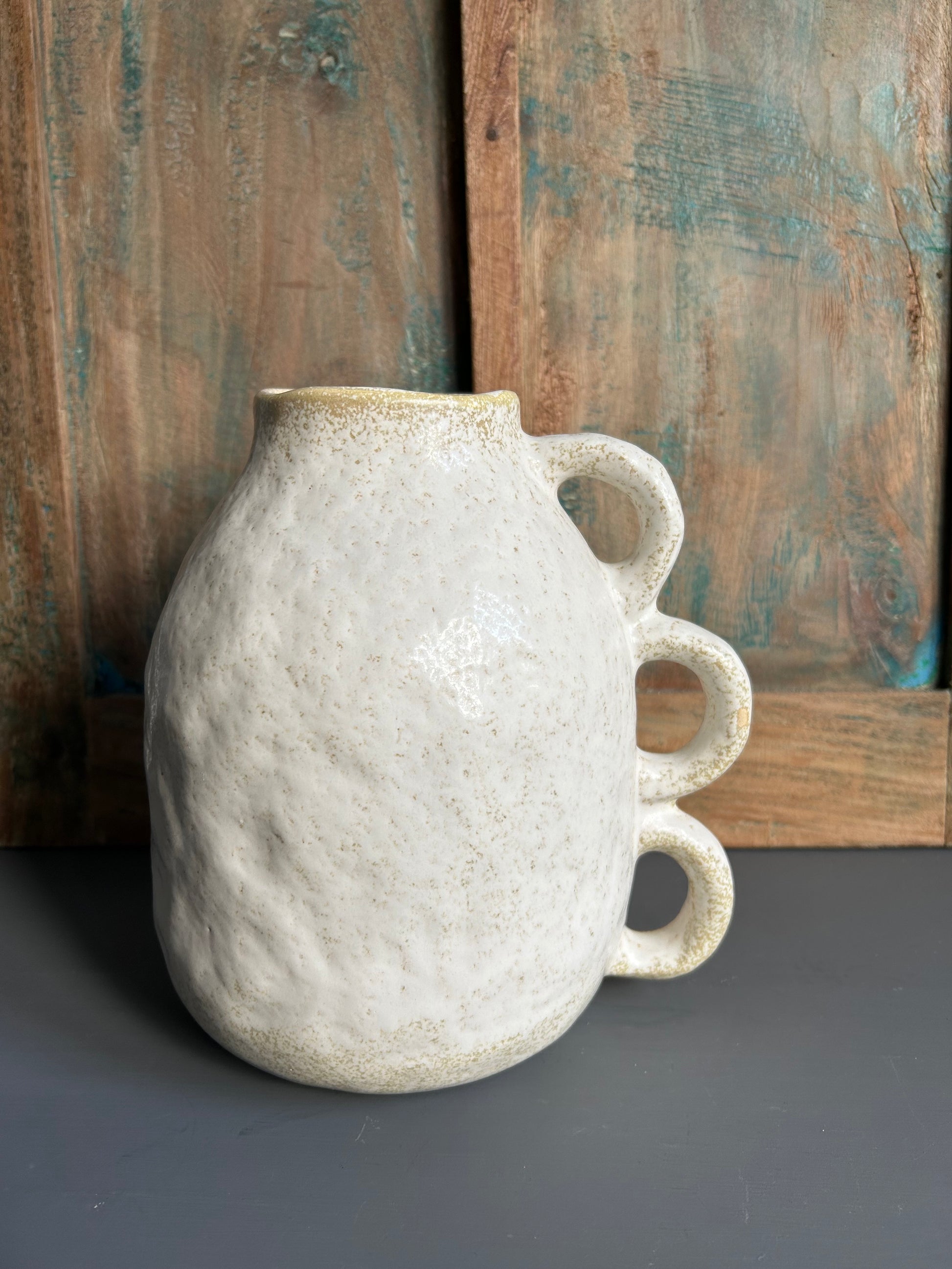 Ecru vaas met grappige oortjes