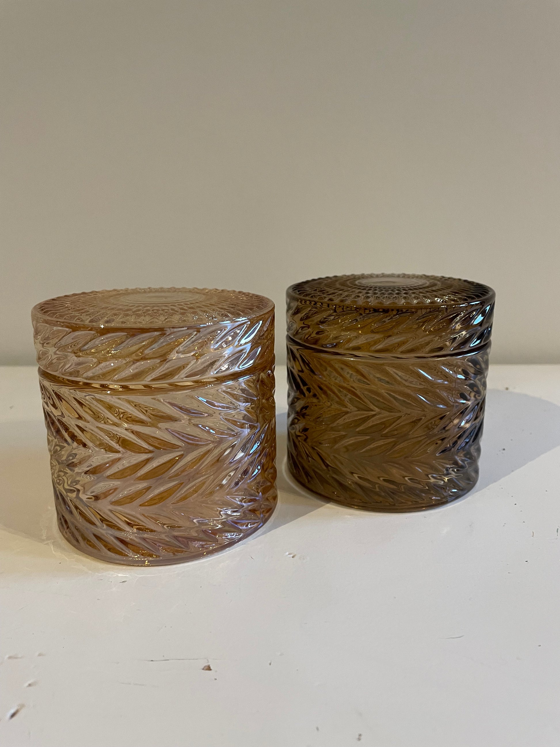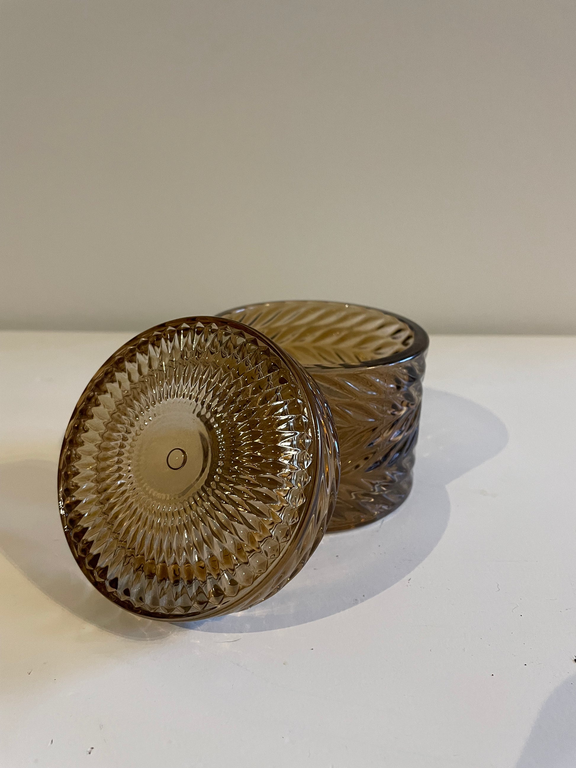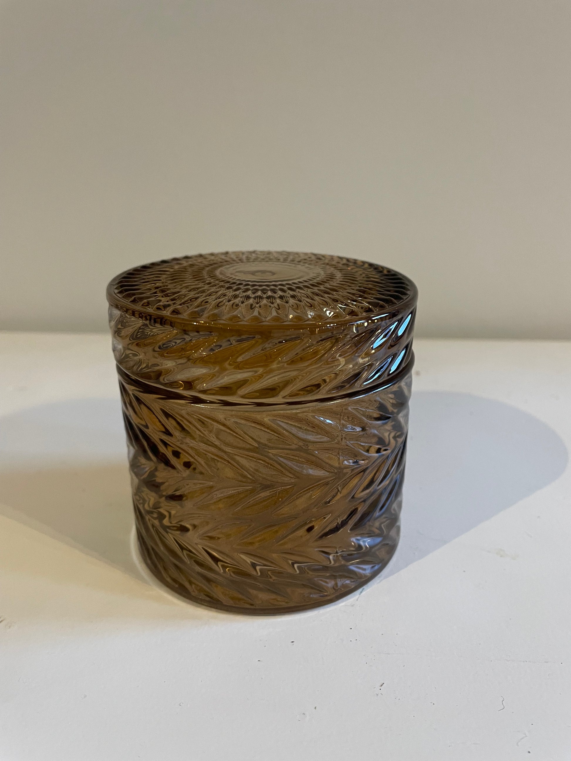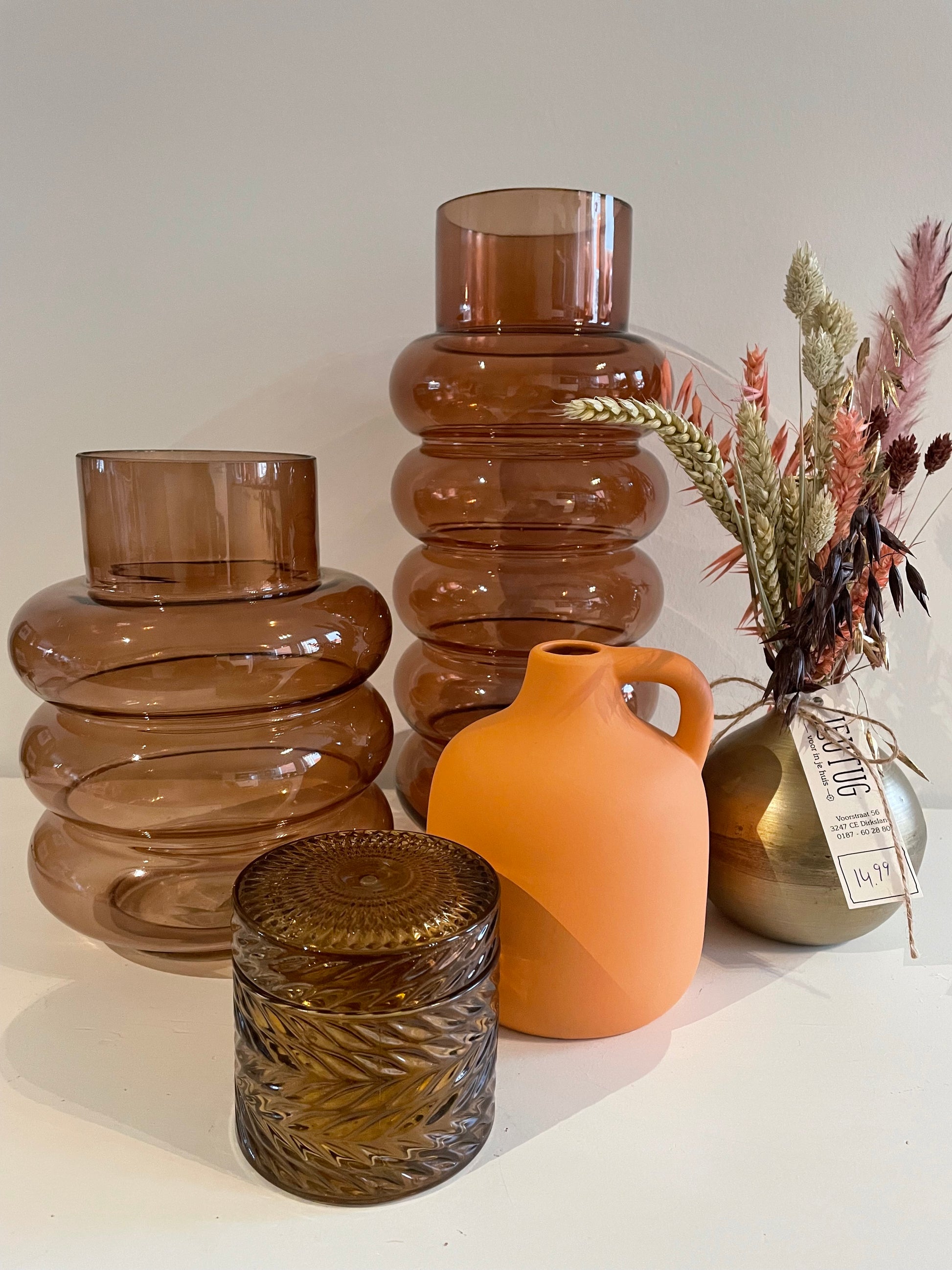 Leuk glazen potje met deksel in de kleur bruin. Ook verkrijgbaar in de kleur zand.