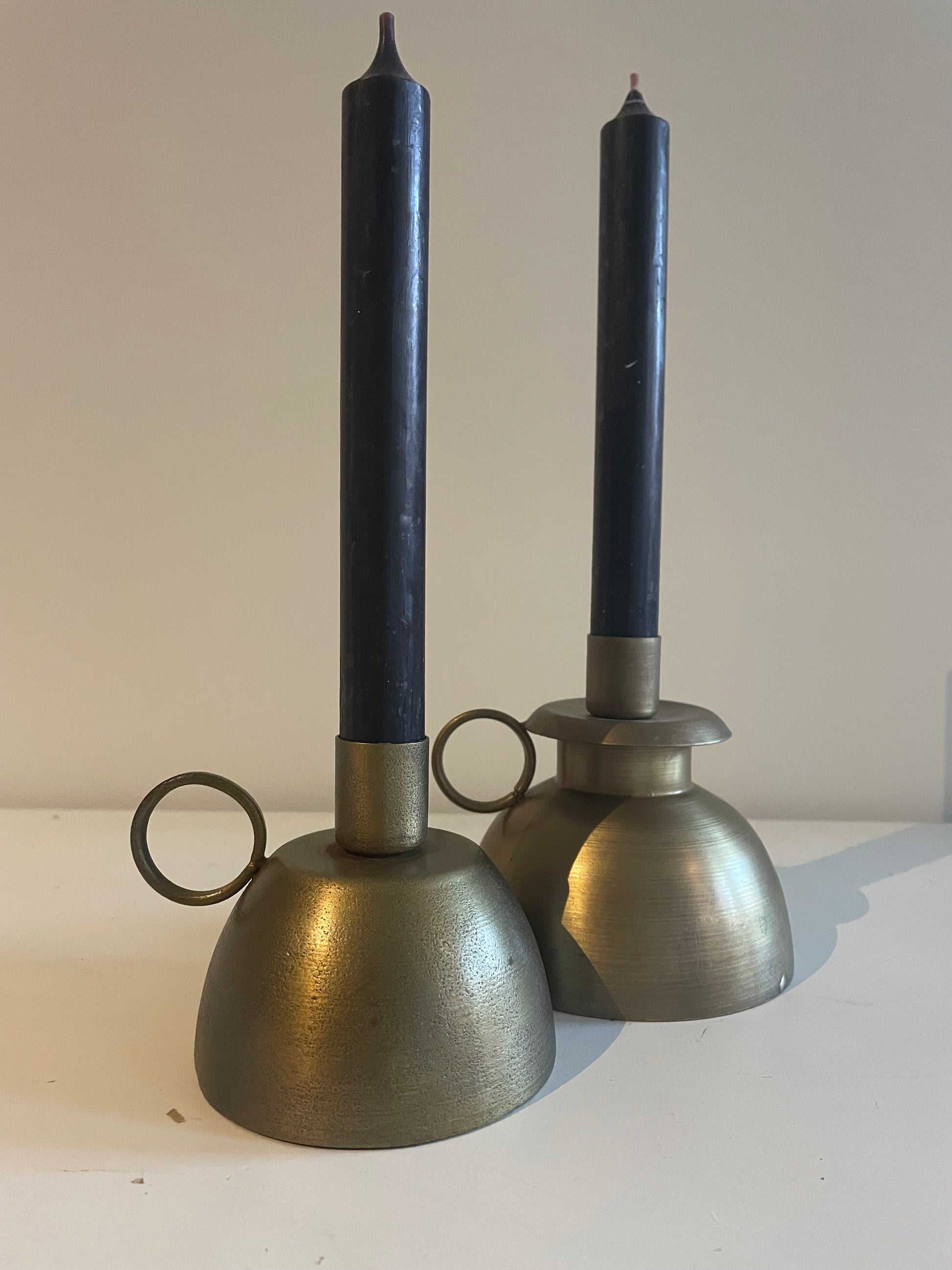 Mooie mat-gouden kandelaar van metaal, grote variant. Ook beschikbaar in een kleinere variant.