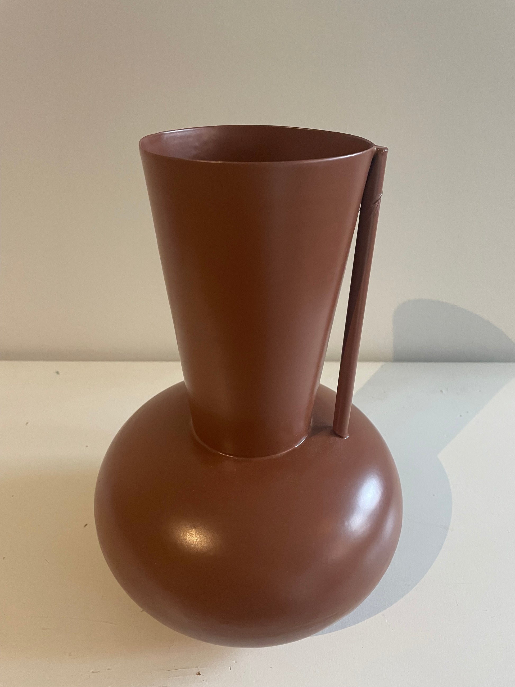Mooie metalen vaas in de kleur terra. Ook beschikbaar in de kleur zwart.