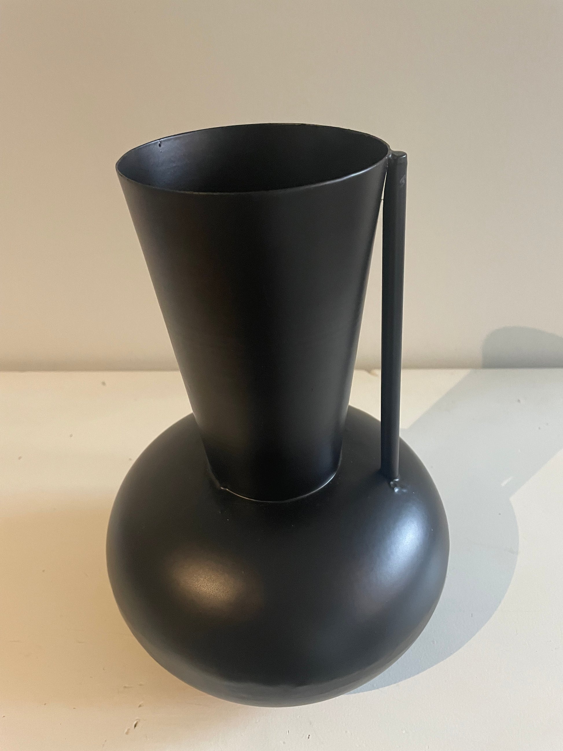 Leuke metalen vaas in de kleur zwart. Ook beschikbaar in de kleur Terra.