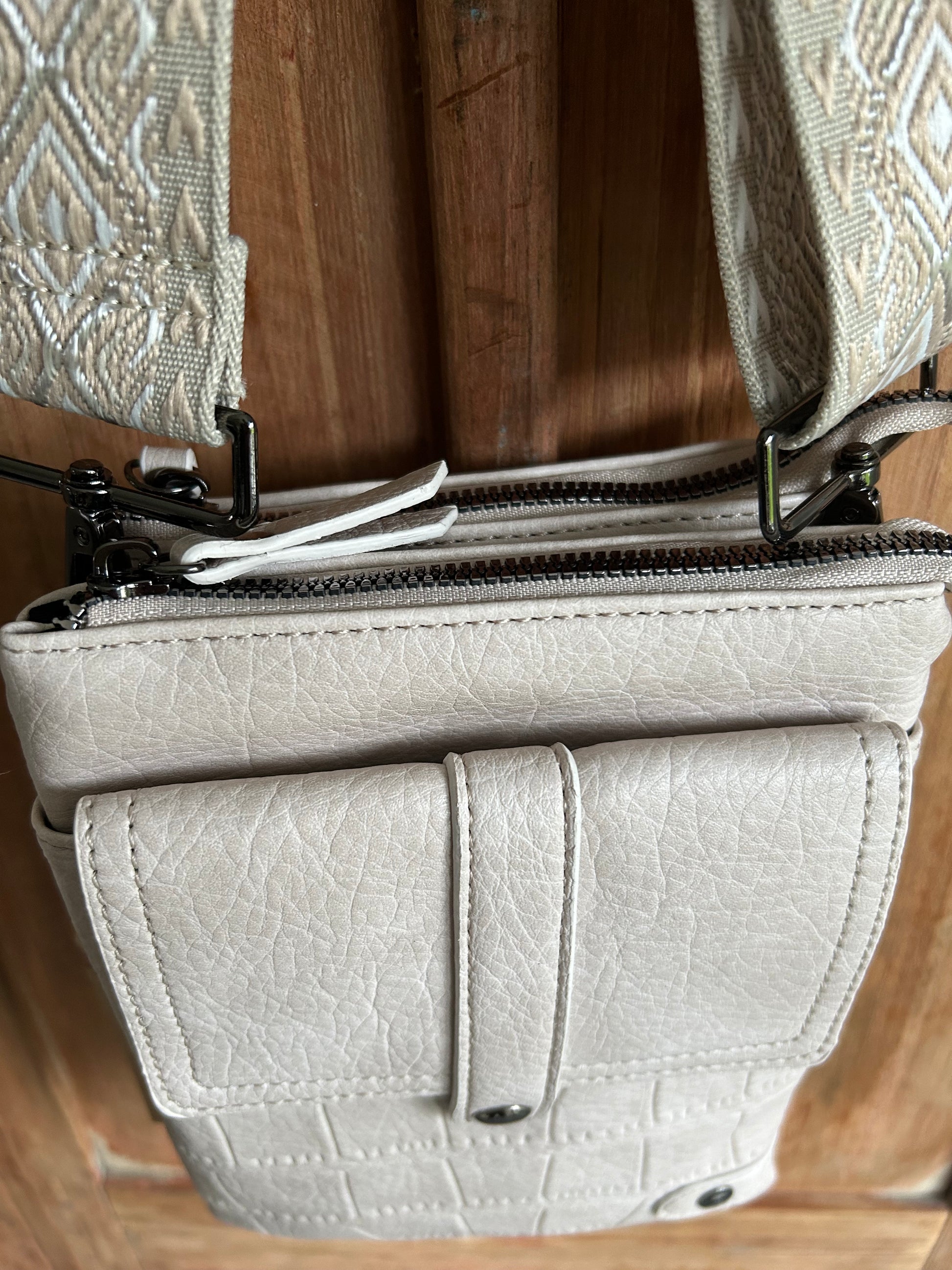 Leuk telefoontasje die ook als schoudertas fungeert.