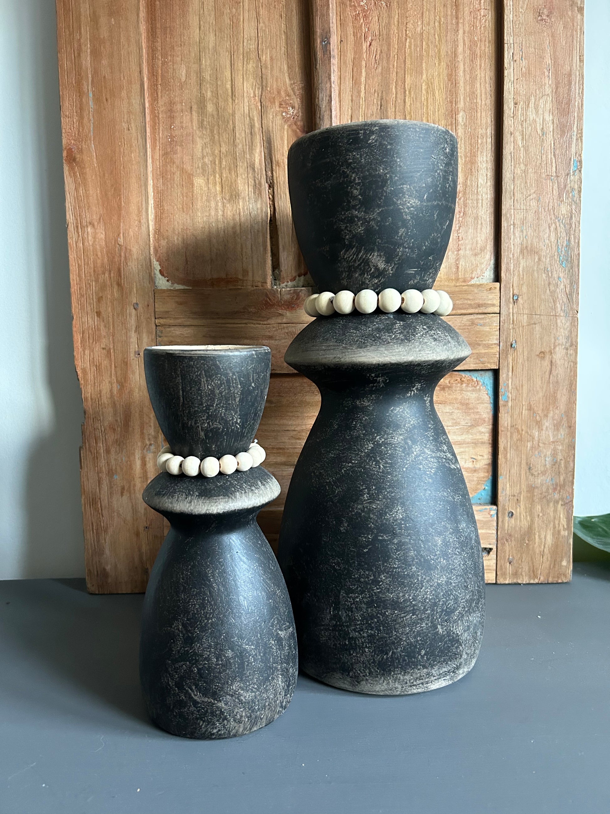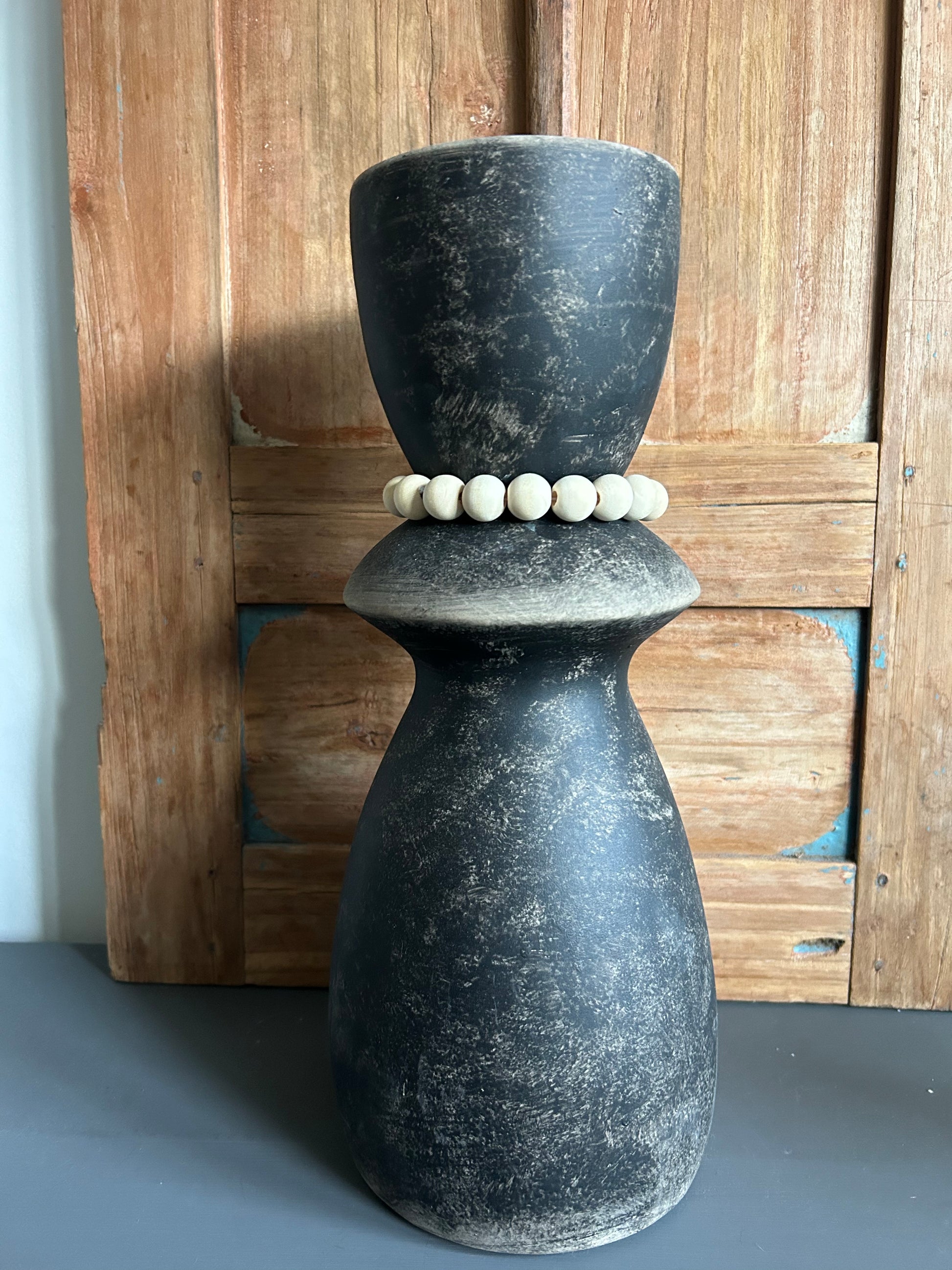 leuke vaas met houten kralen om de hals(kan er ook af)
