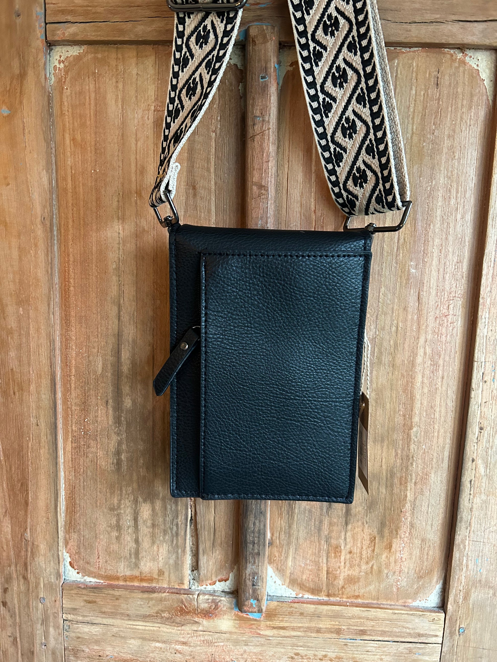 Mooie schouder/telefoontas met 3 vakken, extra ritsvakje aan de achterkant.